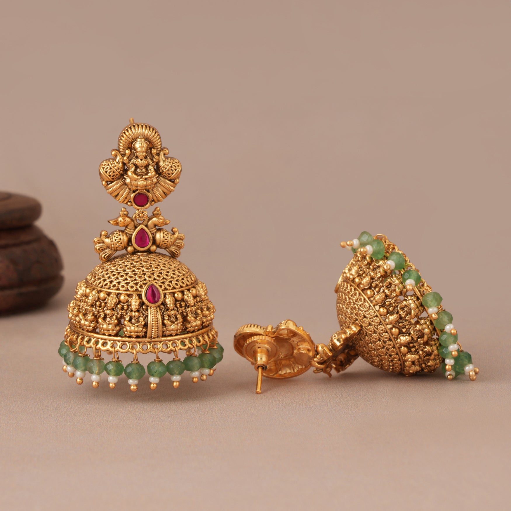 Stunning long antique gold jhumka stone traditional maa Lakshmi earring