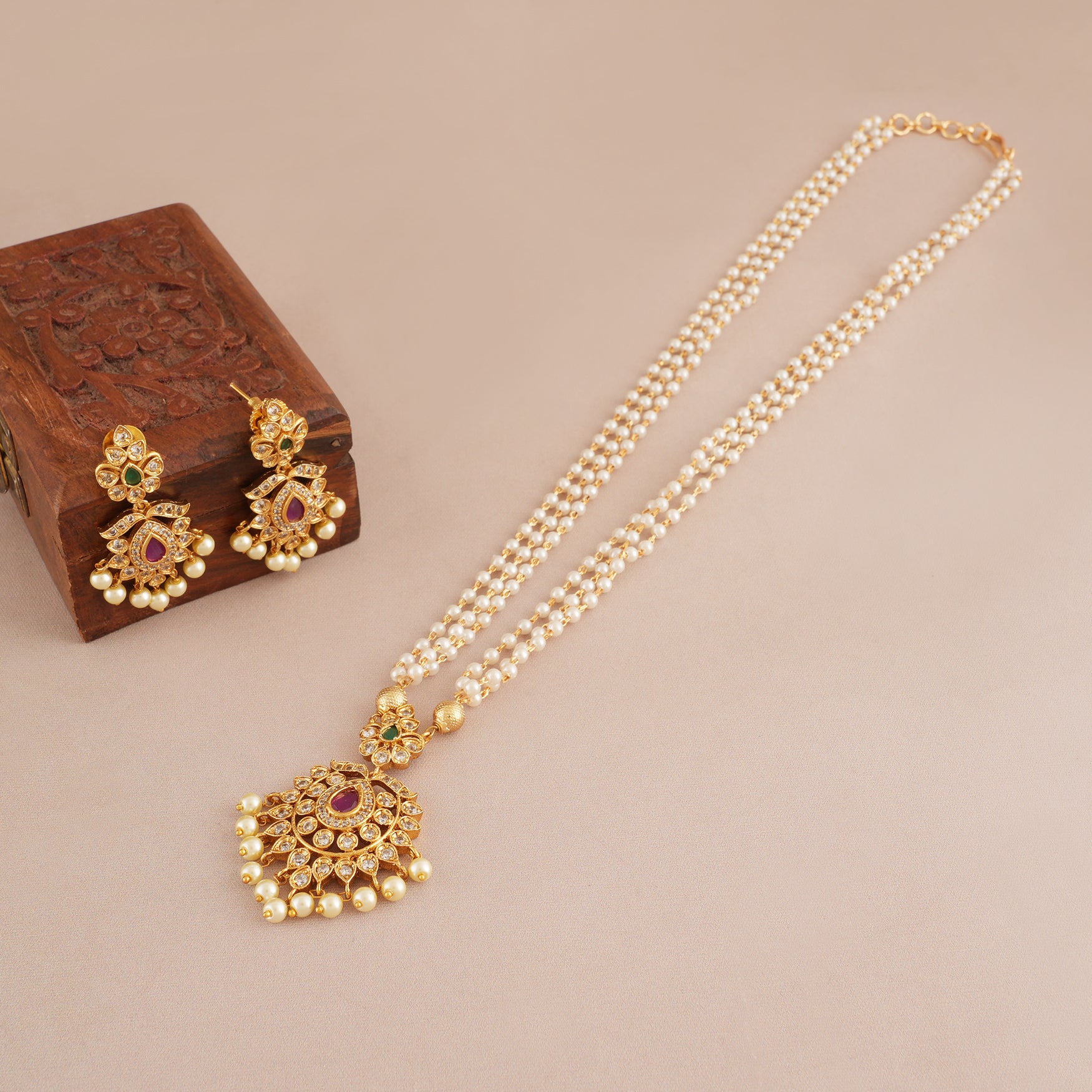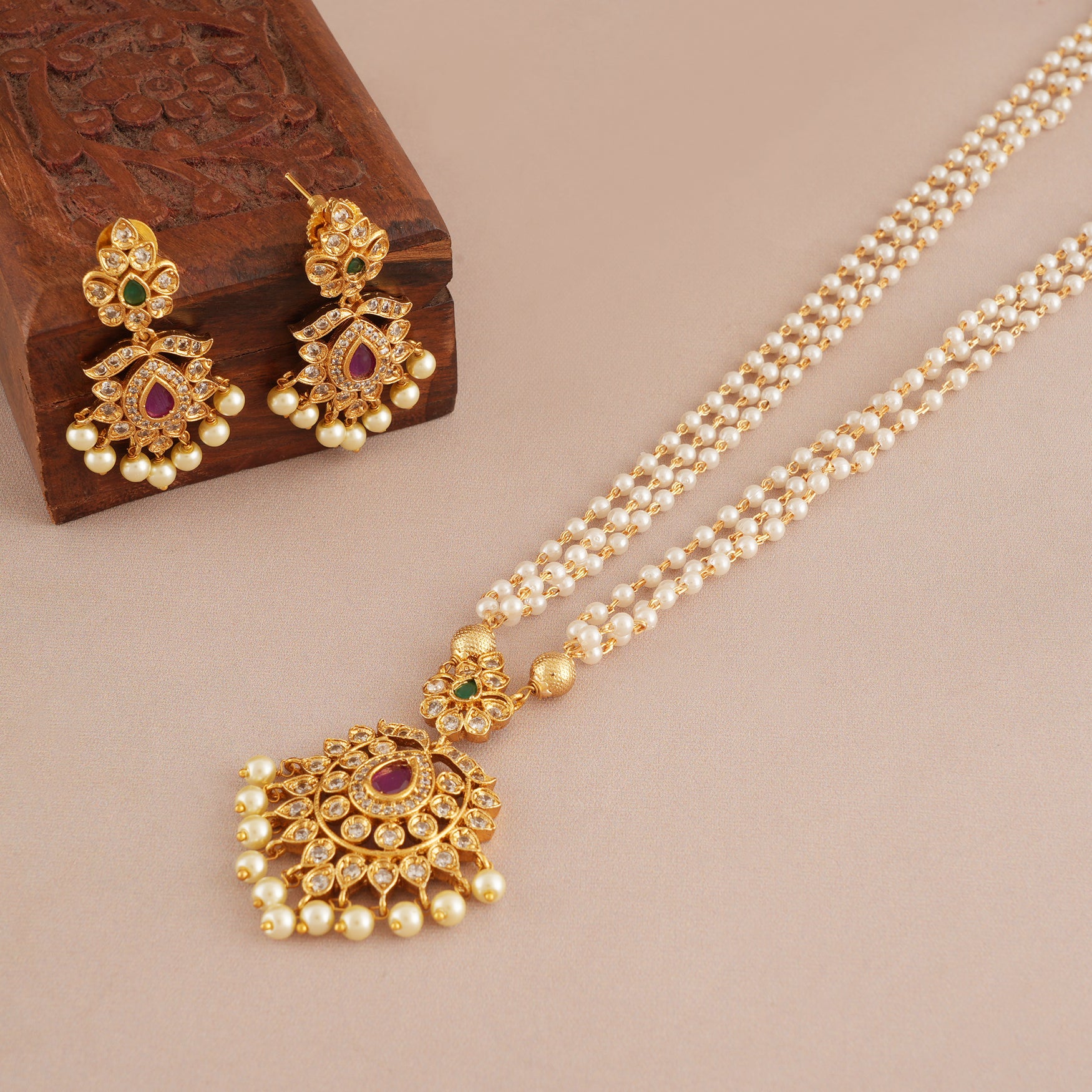 Buy this Stunning pearl antique gold stone pendant set is and get free shipping even on Cash on Delivery