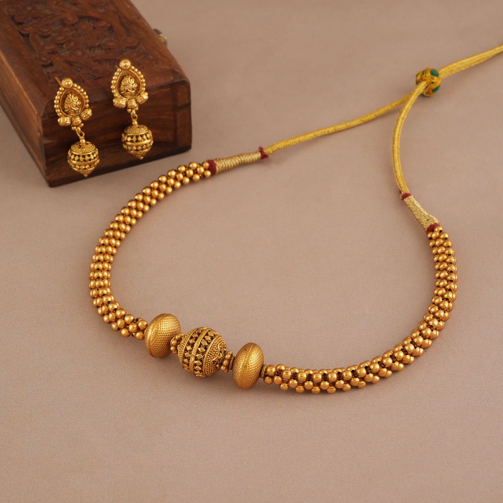 Stunning plain antique gold ball necklace set are show-stopping and come in traditional Indian design with gold plating and handwork.