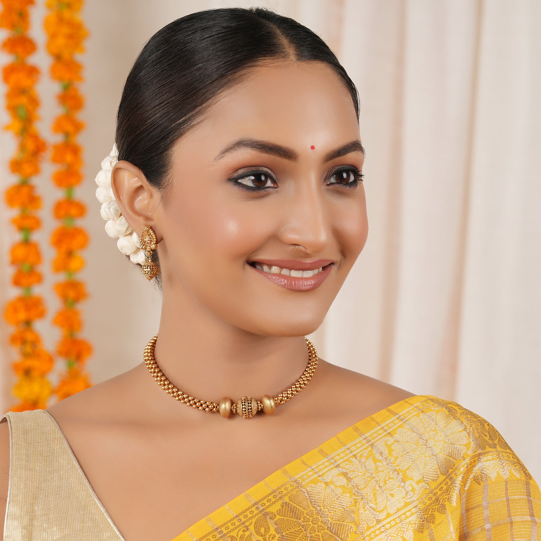 NOTE: These Stunning plain antique gold ball necklace set have been crafted by hand and may have slight irregularities or imperfections in color or embellishment. These irregularities are the result of human involvement in the process and add to the finished product's charm while ensuring you have a one-of-a-kind piece.