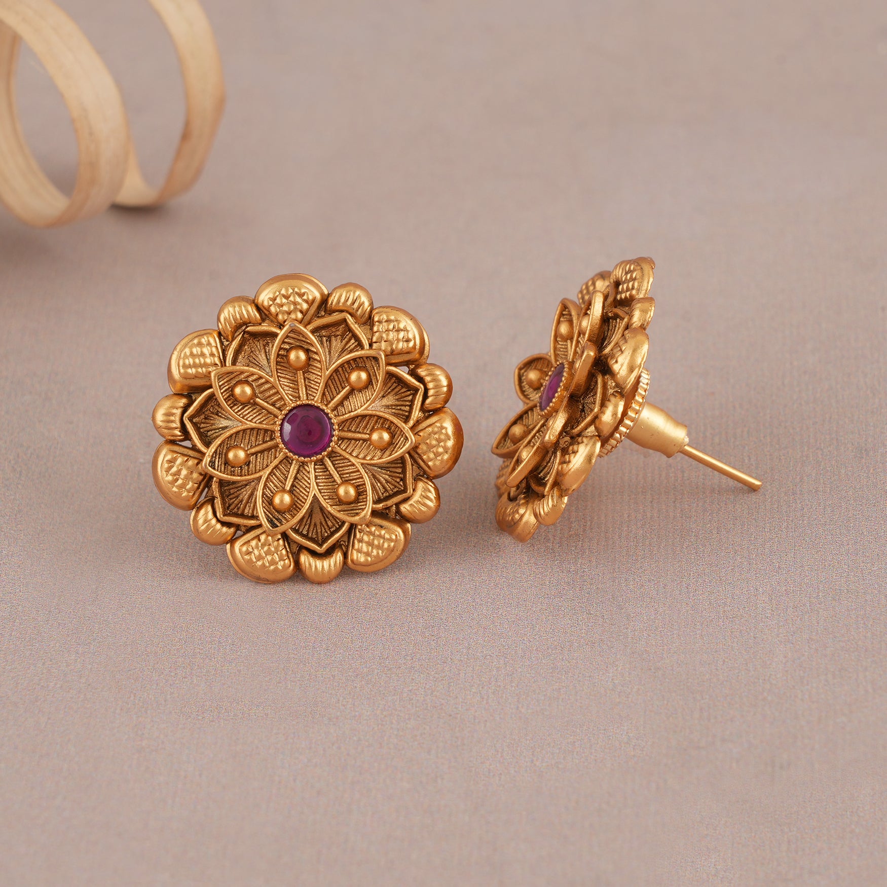 Stunning red stone antique gold stud earring  are show-stopping and come in traditional Indian design with gold plating and handwork.