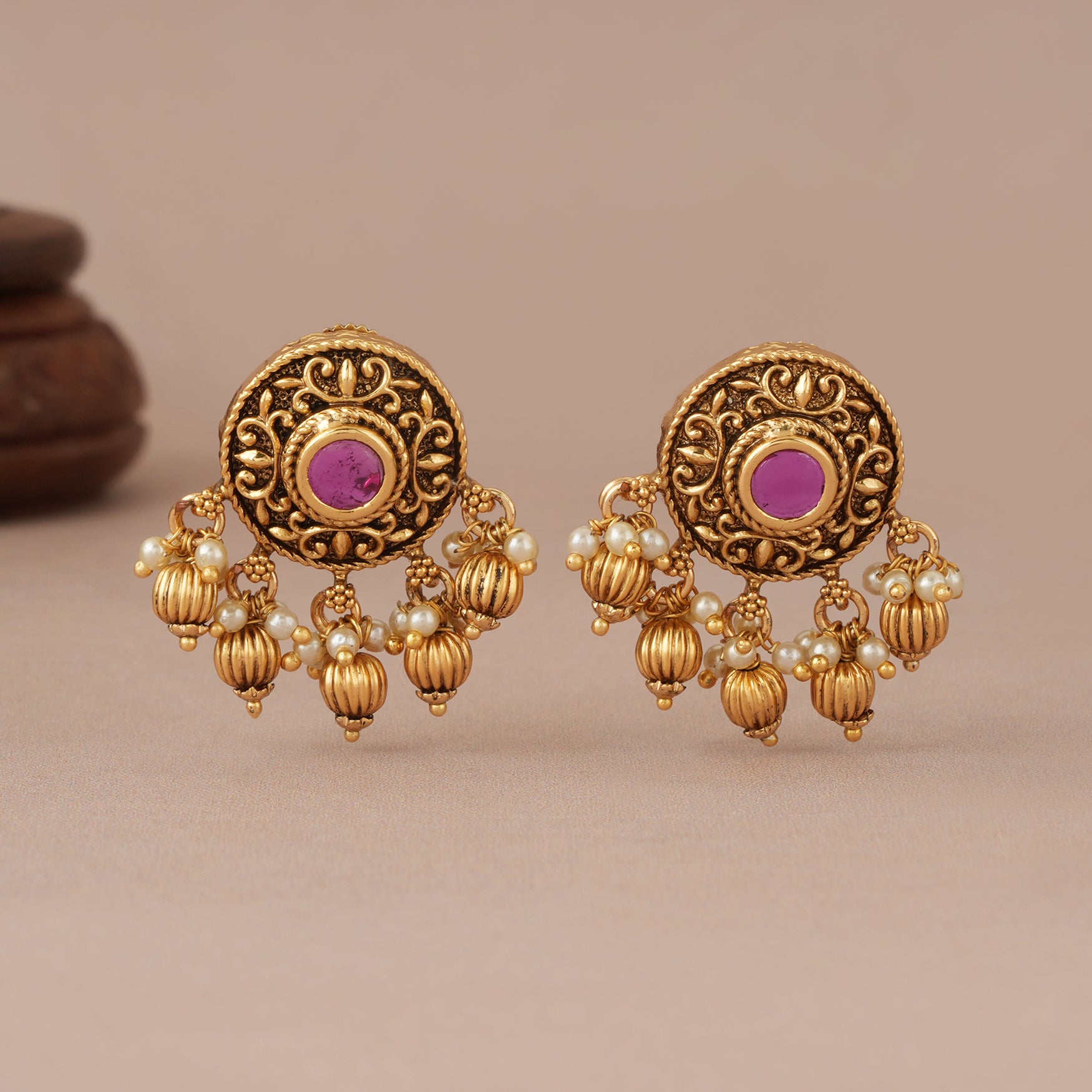 NOTE: These Stunning stone antique ball pearl traditional earring      been crafted by hand and may have slight irregularities or imperfections in colour or embellishment. These irregularities are the result of human involvement in the process and add to the finished product's charm while ensuring you have a one-of-a-kind piece.