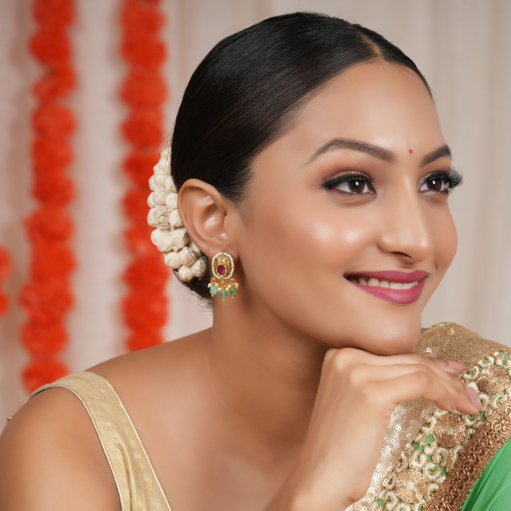 NOTE: These Cute stone antique gold stone drop earring   been crafted by hand and may have slight irregularities or imperfections in colour or embellishment. These irregularities are the result of human involvement in the process and add to the finished product's charm while ensuring you have a one-of-a-kind piece.