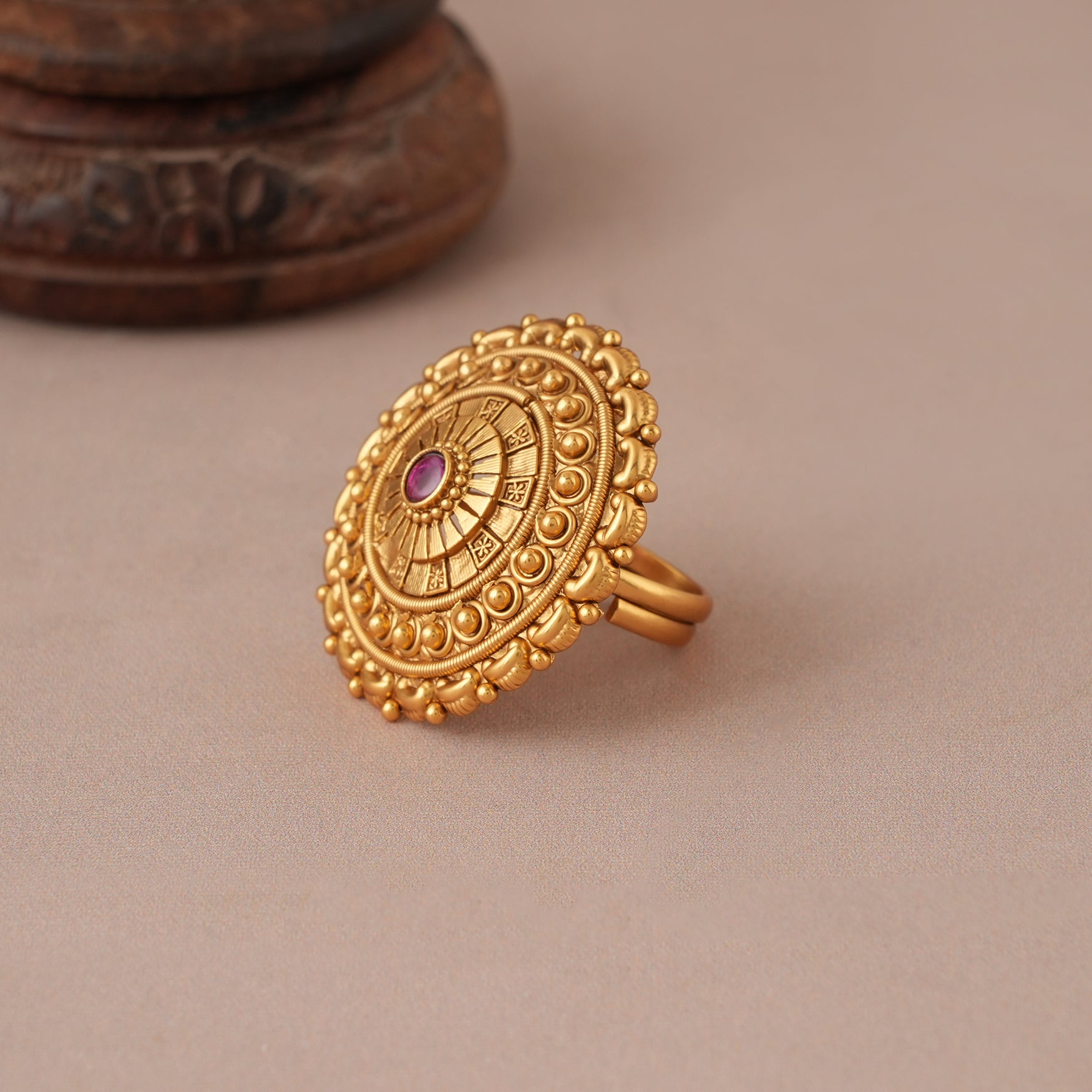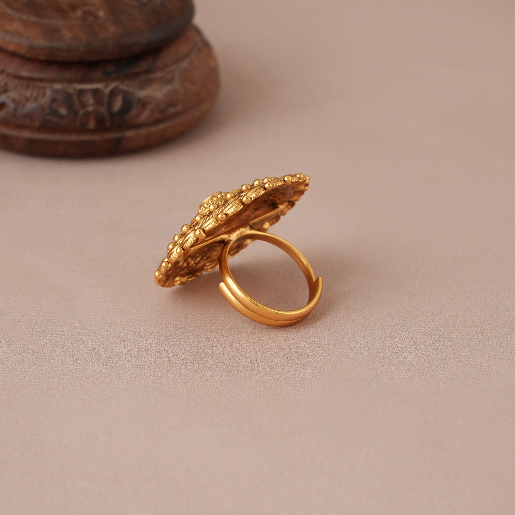 NOTE: This has been crafted by hand and Traditional antique gold round floral finger ring have slight irregularities or imperfections in color or embellishment. These irregularities are the result of human involvement in the process and add to the finished product's charm while ensuring you have a one-of-a-kind piece.