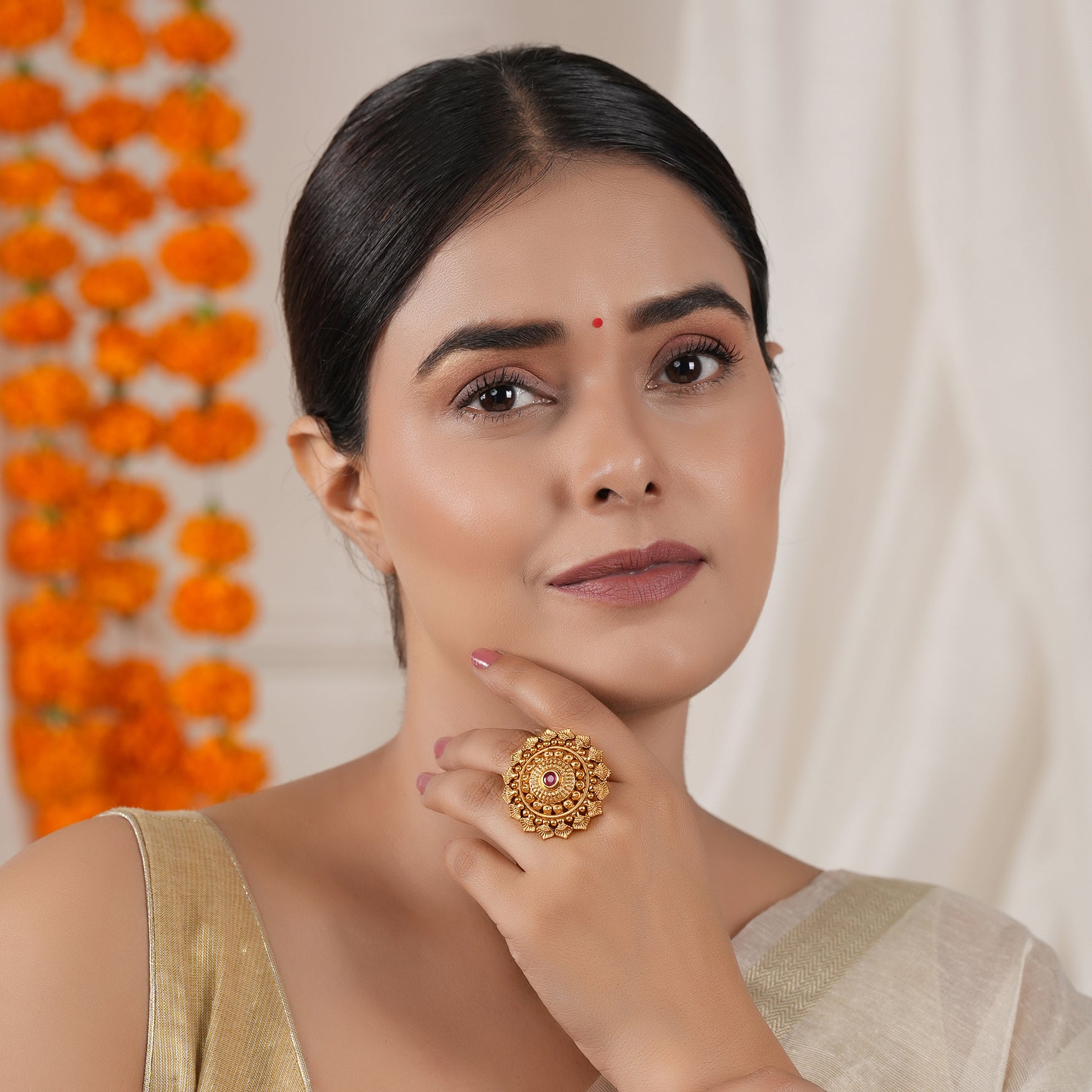 Traditional beautiful antique gold finger ring is a timeless piece that will provide you with years of beautiful wear. The metal-brass alloy with gold plating is made to last. Traditional beautiful antique gold finger ring is show-stopping and comes in traditional Indian design with gold plating and handwork. Traditional beautiful antique gold finger ring get free shipping even on Cash on delivery